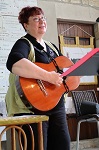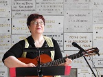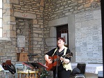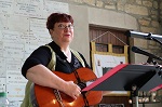 cliquer pour agrandir les photos ![]() ![]() ![]() ![]() ![]() ![]() ![]() ![]() ![]() ![]() ![]() ![]() ![]() ![]() ![]() ![]() ![]() ![]() | FETE DE LA MUSIQUE 2017 Dans le cadre de la Fête de la Musique à Echenoz-la-Méline (70) fut donné un concert à la chapelle de Solborde le dimanche 25 juin 2017 à 16 heures, regroupant les chants de la chorale du village "Melina Vox" (ex-"chorale Saint-Martin") et la prestation vocale et instrumentale de Claudie Charpillat, aimablement invitée pour cette occasion (on remercie Marie-Christine Clouet). ![]() C'était une magnifique journée d'été, on avoisinait les 30 degrés, et les petites pauses boisson furent fréquentes (un Château La Pompe 1er cru de derrière les fagots...). Après une très jolie première partie par la chorale Mélina Vox, forte d'une vingtaine de chanteurs, Claudie s'installa, avec l'aide diligente d'Olivier, pour un petit concert d'environ 45 minutes de chansons voix-guitare de sa composition. La chanteuse ponctua sa prestation de quelques interventions à l'accordéon diatonique - instrument qu'elle étudie depuis un an - sur de sympathiques airs d'un registre de "trad", qui nous emmenèrent en voyage, de la France profonde au Grand Nord, de la Louisiane aux côtes bretonnes, jusqu'au naufrage ! Avec "Petite épave", le public présent eut la primeur d'une nouvelle composition de Claudie, sur un texte de Patrice Pertuit, chanson que personne n'avait encore entendue auparavant ! Un ballet de papillons vint fêter avec nous le retour à la vie à la fin de "Mal d'amour". La dernière chanson, "Qu'est-ce que ça peut faire !", fut entonnée d'un poumon joyeux par l'assemblée, choristes comme non-choristes : bravo et surtout merci ! La chorale Mélina Vox revint pour conclure cette Fête de la Musique par deux chants d'essence religieuse. De quoi nous rappeler que nous étions cet après-midi-là dans la charmante chapelle privée de Solborde, généreusement ouverte au public par ses propriétaires pour les offices religieux et la Fête de la Musique. Combien pouvions-nous être ? Une soixantaine peut-être, une fois les choristes assis. Un grand merci à Alain et à Olivier qui veillèrent à prendre de nombreuses (excellentes) photos en souvenir de ce moment musical. Une fois le concert terminé, un rafraîchissement bienvenu fut proposé à l'extérieur, dans le cadre enchanteur de verdure généreuse qu'offre ce bel endroit. La convivialité était de mise autour du petit vin blanc bien frais et des délicieuses pâtisseries qui l'accompagnaient. Chacun avait passé un bon moment et partageait sa bonne humeur, soulignant avec enthousiasme auprès de la chanteuse ce qu'il avait tout particulièrement aimé dans sa prestation. Pour l'une, c'était autant les textes que la musique. Une autre voudrait pouvoir réentendre "Le Château des Quatre Lunes". Celle-ci aurait bien aimé que les morceaux soient plus longs. Une autre encore se dit touchée par la profondeur des textes. On exprima son intérêt ou son attachement pour la Louisiane pour des raisons personnelles fortes. On souligna les progrès réalisés par la musicienne depuis le concert de février ("comme au coin du feu") dans la pratique de l'accordéon diatonique, instrument dont elle a commencé l'étude au printemps 2016. On mit un visage sur un correspondant rencontré sur le net, on raviva des amitiés qui firent chaud au coeur, on présenta les amis qu'on avait amenés, on sollicita une dédicace sur un programme. Plus touchant encore, il se fit spontanément, dans un frisson partagé, un échange d'une grande profondeur sur la Vie et les choix qui nous appartiennent, en écho à la chanson "50 ans". Entre deux petits fours, on empocha d'une main poisseuse une carte indiquant les coordonnées de la chanteuse. A noter que ce concert était la dernière prestation vocale de Claudie avant un bon moment dans la mesure où ses prochaines interventions musicales seront des animations à l'accordéon diatonique données pour l'office de tourisme à Bourbonne (52) en juillet et août 2017. Avis aux amateurs ! ![]() |
